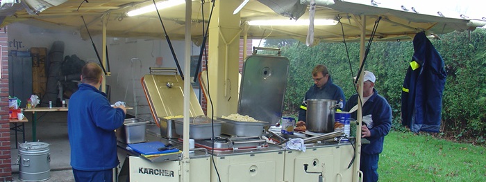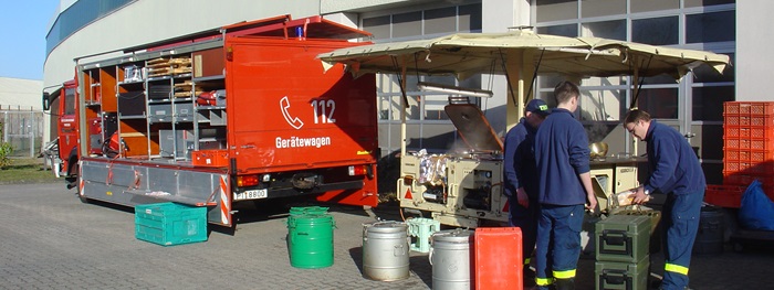 Der Logistik-Trupp Verpflegung (Log-V-Tr; Personalstärke -/1/8/9) bereitet Kalt- und Warmverpflegung und Getränke für bis zu 200 Personen zu.